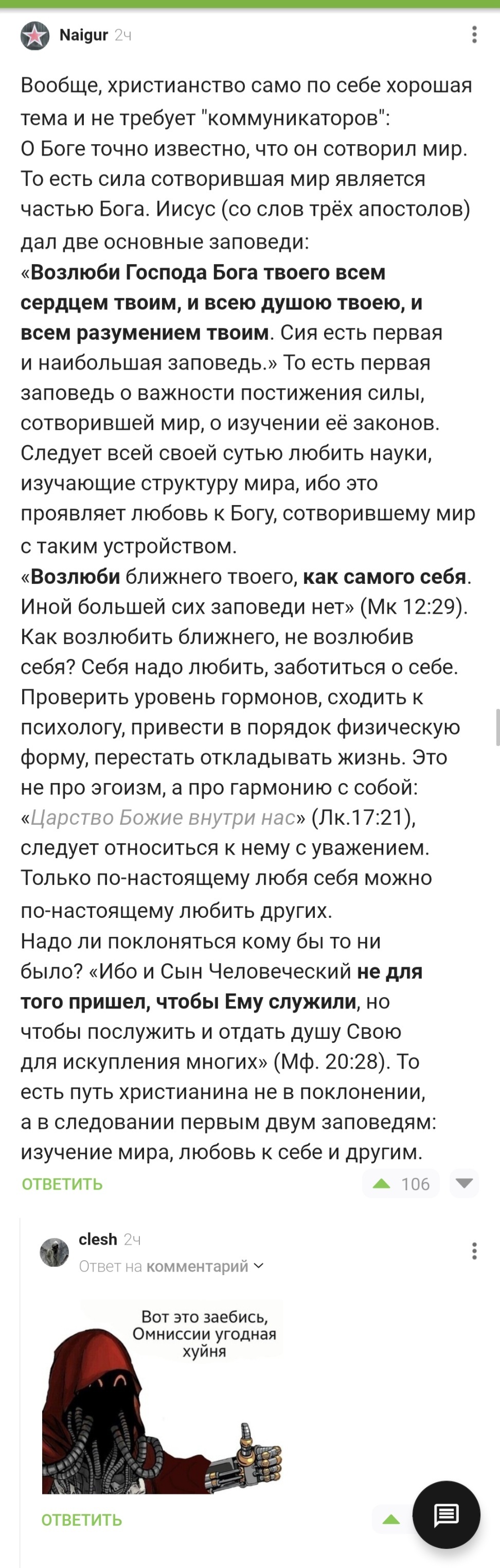 10 paragon1 Суть христианства в одном комментарии 11 месяцев назад Комментарии на Пикабу Скриншот Длиннопост Ещё 0