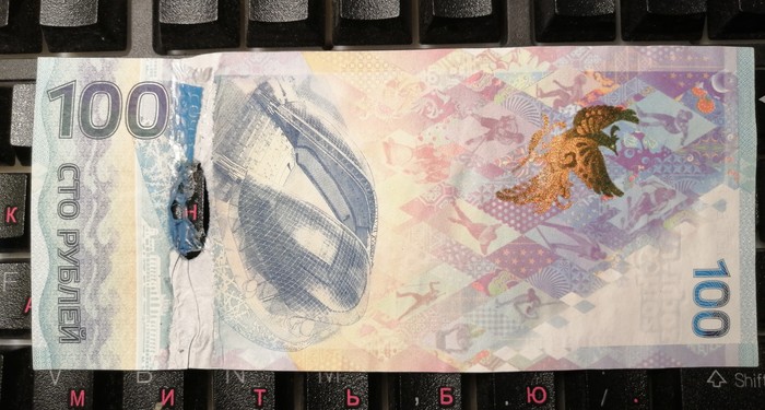 Люблю собирать красивые бумажки, пусть не очень и дорогие. Лежала спокойненько Сочинская сотка с другими купюрами, думаю надо их оформить в рамочку, глаз будут радовать. И по старой привычке прополоскала под водой и между листочками утюжком..... А оказывается там полиэтиленовая вставка пиз.... пошла от температуры, странная конечно технология, уж лучше Ярославль и Хабаровск даже мятые радуют.