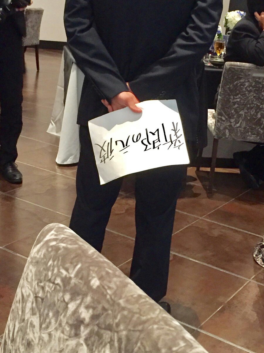 Гости ожидали что когда табличку заметит сам жених или невеста, что-то может произойти, но, как видно на последнем фото, жених был вполне рад визиту бывшего.