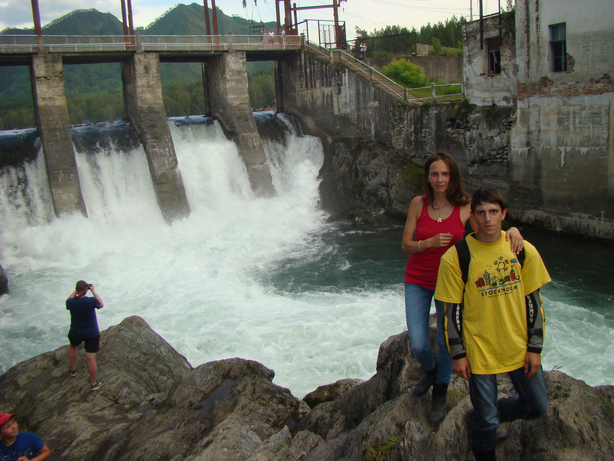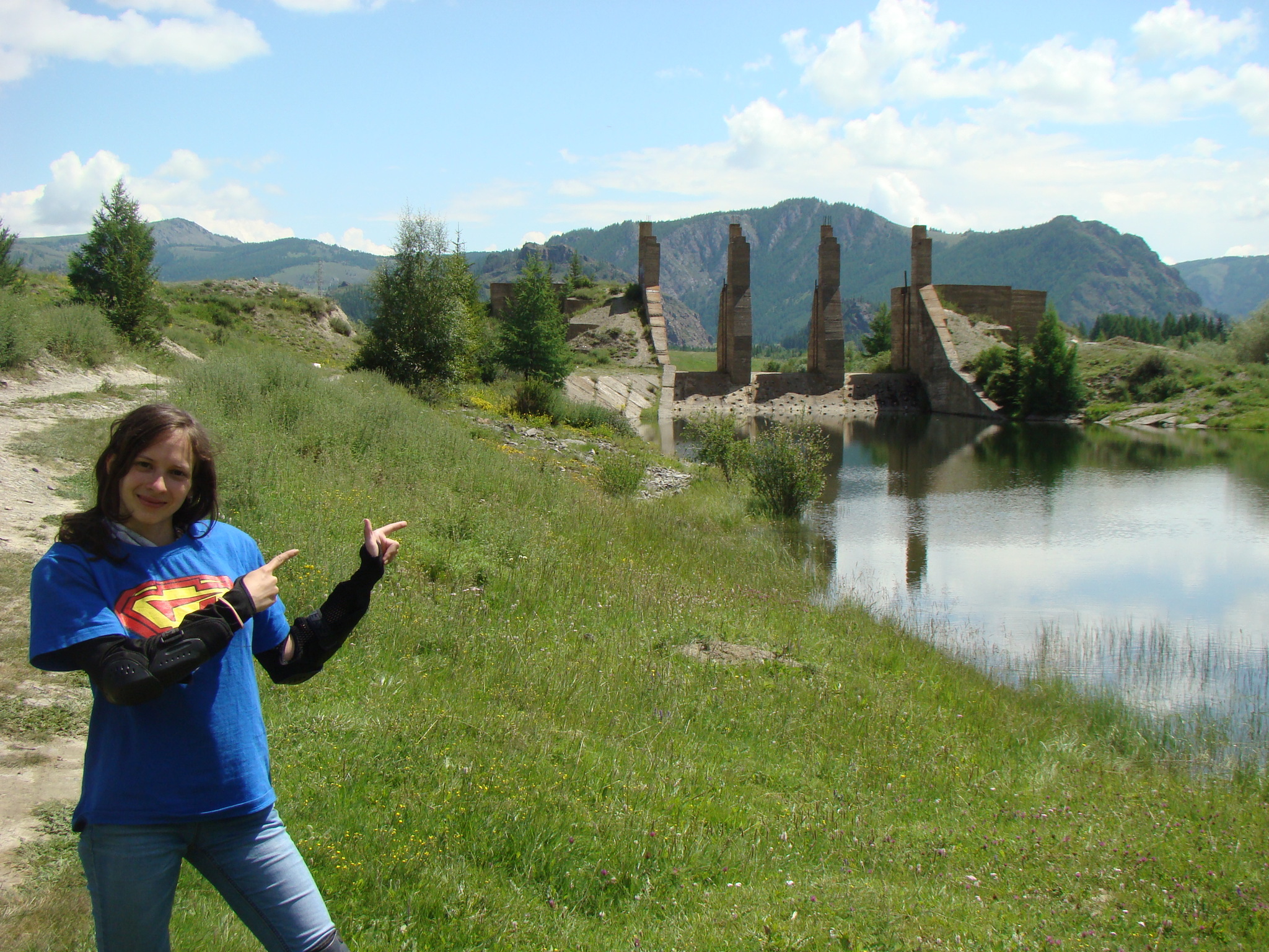 Задерживаться долго не стали на базе, собрались и поехали смотреть памятник человеческой глупости – Акташскую ГЭС (50.252969, 87.663212). Начали строить её ещё в начале 60-х годов прошлого века, и, уже находясь на финальной стадии, стройку заморозили, а потом и совсем забросили. Кругом бегают шустрые белки, одна из которых чуть не угодила нам под колесо.