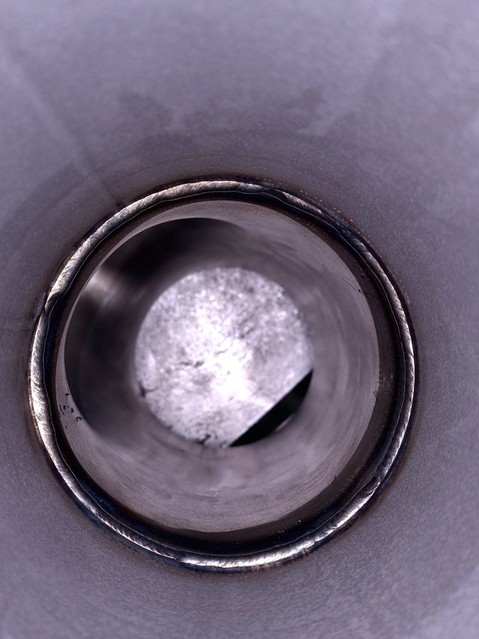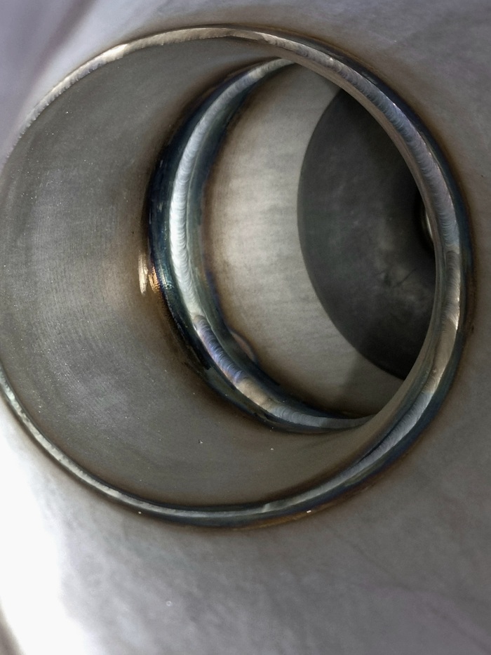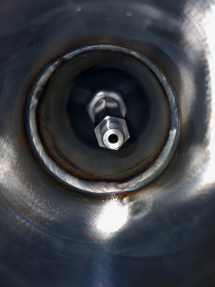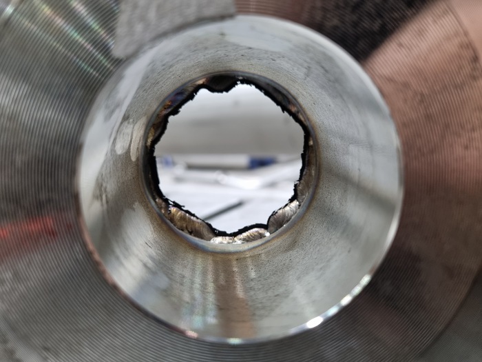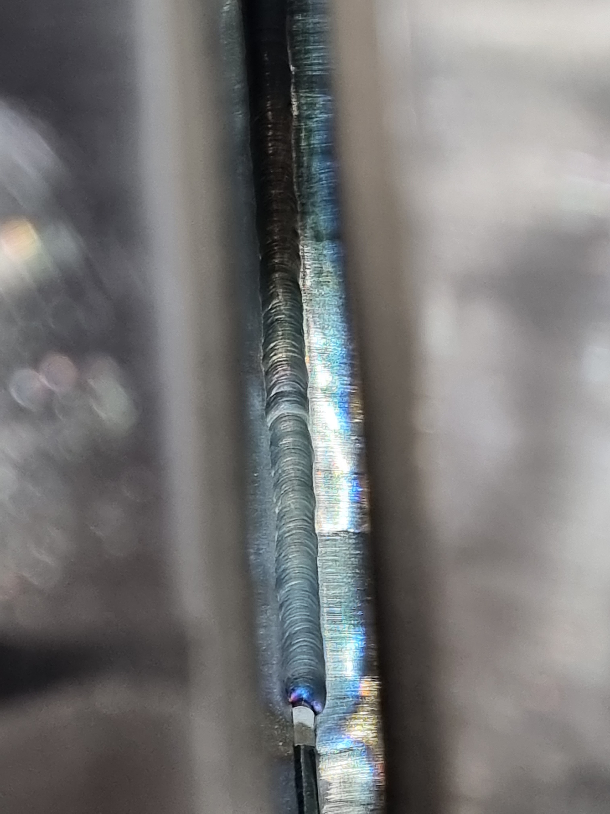 Тут кстати после последнего захода в корне из-за избытка аргона в трубе выдавился шов наружу, поэтому используем на одном конце заглушку с отверстием в 4мм для протавливания