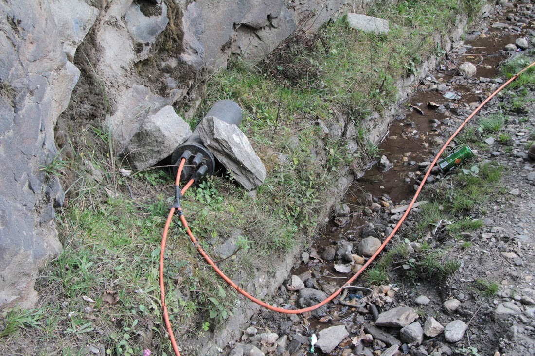 Трубка проложена под землёй в кабельной канализации. Также её можно закапывать в грунт там, где канализация отсутствует. По паспорту трубка выдерживает давление 8 атмосфер.