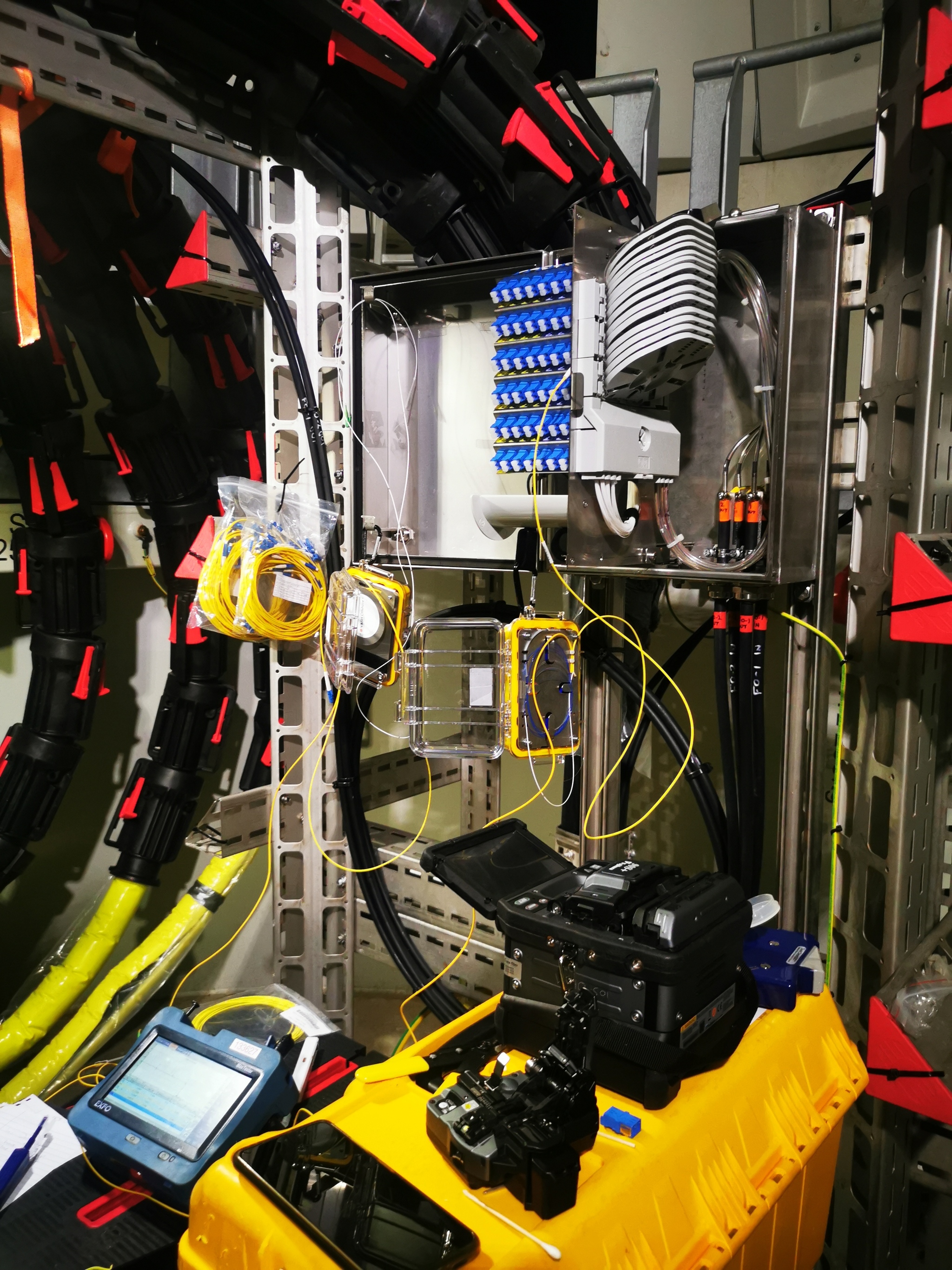 Когда все пигтейлы и модули с волокнами на своих местах, пучки по 12 пигтейлов промаркированы и отмерены, снимаю пластиковую изоляцию с модулей, удаляю гидрофобный гель и... Можно приступать к сварке.