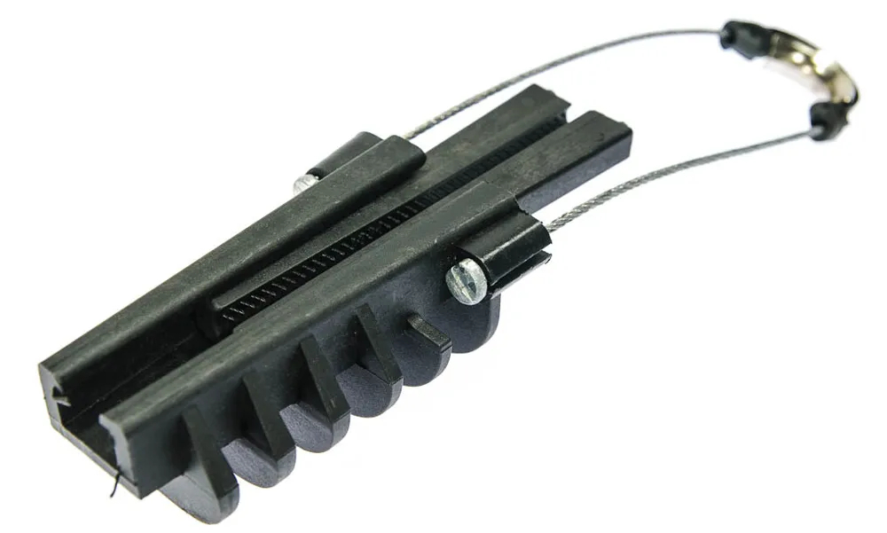 Чтобы не повредить волокна стяжкой, на изоляцию наклеиваю мягкую "вспененную" ленту. Силовой элемент, пруток из центра кабеля, зажимаю под винт. Тут требуется немного внимания, иначе можно придавить модуль уже разделанного кабеля.