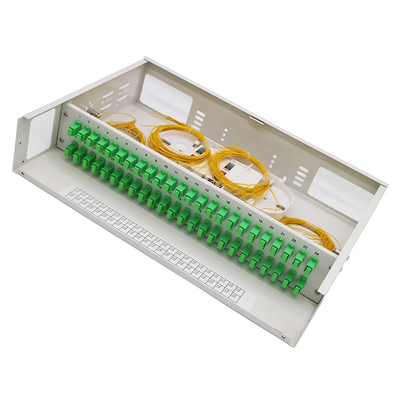 В этом шкафу будет стоять сплиттер на 64 выхода, то есть каждое волокно в уходящем кабеле идёт к абоненту. На пути будет ещё несколько разветвлений, кабель на 72 волокна превратится в 48-ми волоконный, а потом в 12-ти, но суть топологии остаётся только однокаскадной.