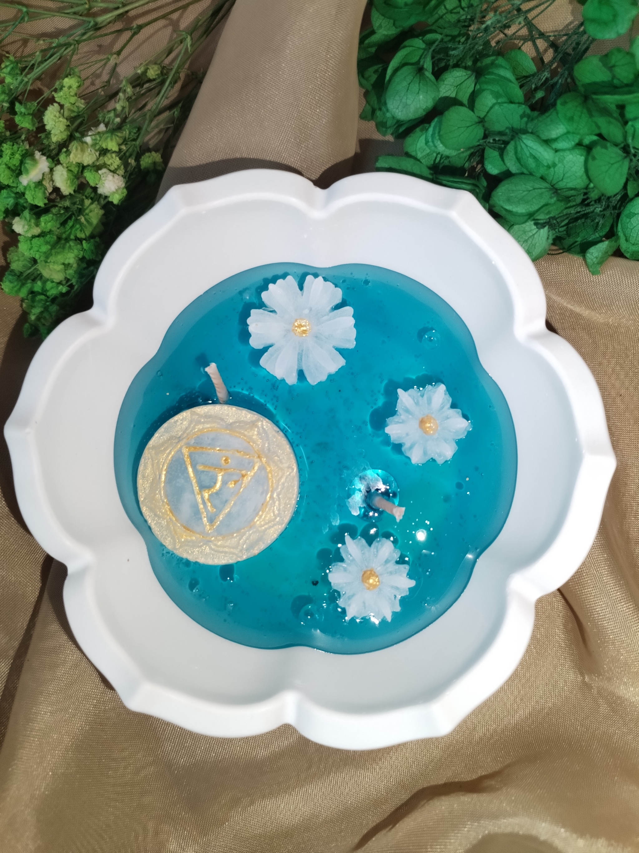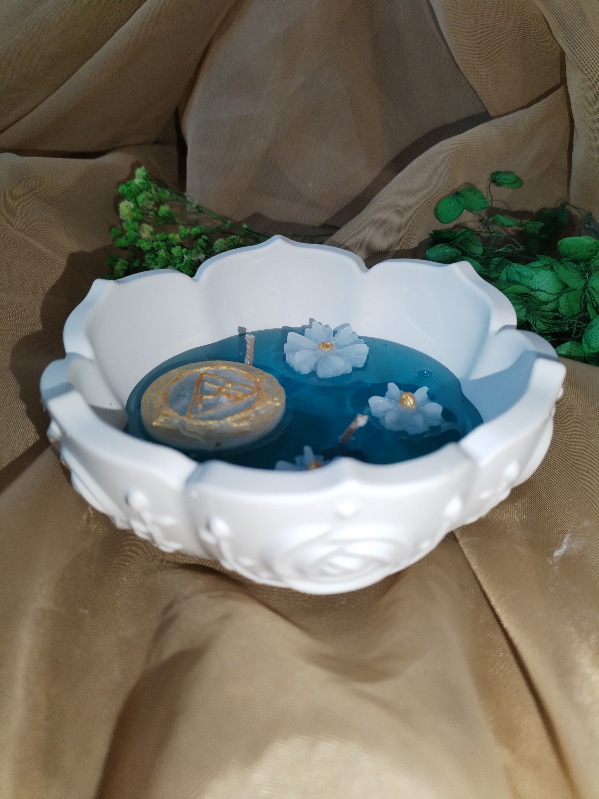 Чакровая свеча для медитации с 2-мя фитилями, украшена восковыми цветами и мандалой "Манипура чакра" ❤️. Медитация на чакру раскрывает истинное предназначение и максимально явные таланты. Отвечает за лидерские качества, способность достигать цели, статус, успех🤗. Гелевый воск имитирует водную гладь, а дизайн в целом сосредоточен на природных водных мотивах🙏🧘🪷 . Свеча обладает тонким запахом "СТРУЧОК ВАНИЛИ", что усиливает вибрации внутренней энергии уверенности и самореализации.