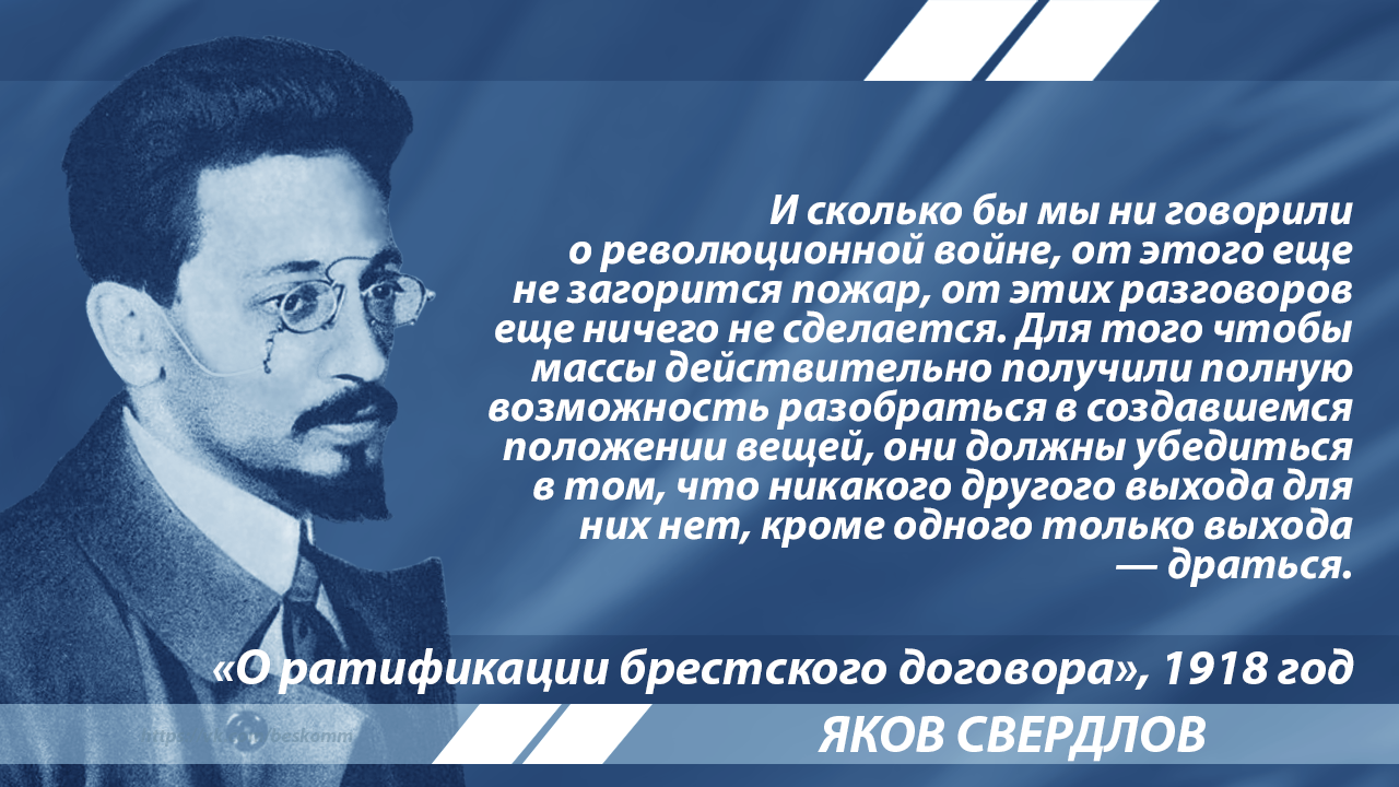 Товарищи! Основной вопрос, который должен занимать нас в настоящий момент, следующий: должна ли наша партия на предстоящем съезде советов добиваться того, чтобы подписанный нами мир был ратифицирован или не был ратифицирован. Вот тот вопрос, на который мы должны дать ясный и точный ответ.