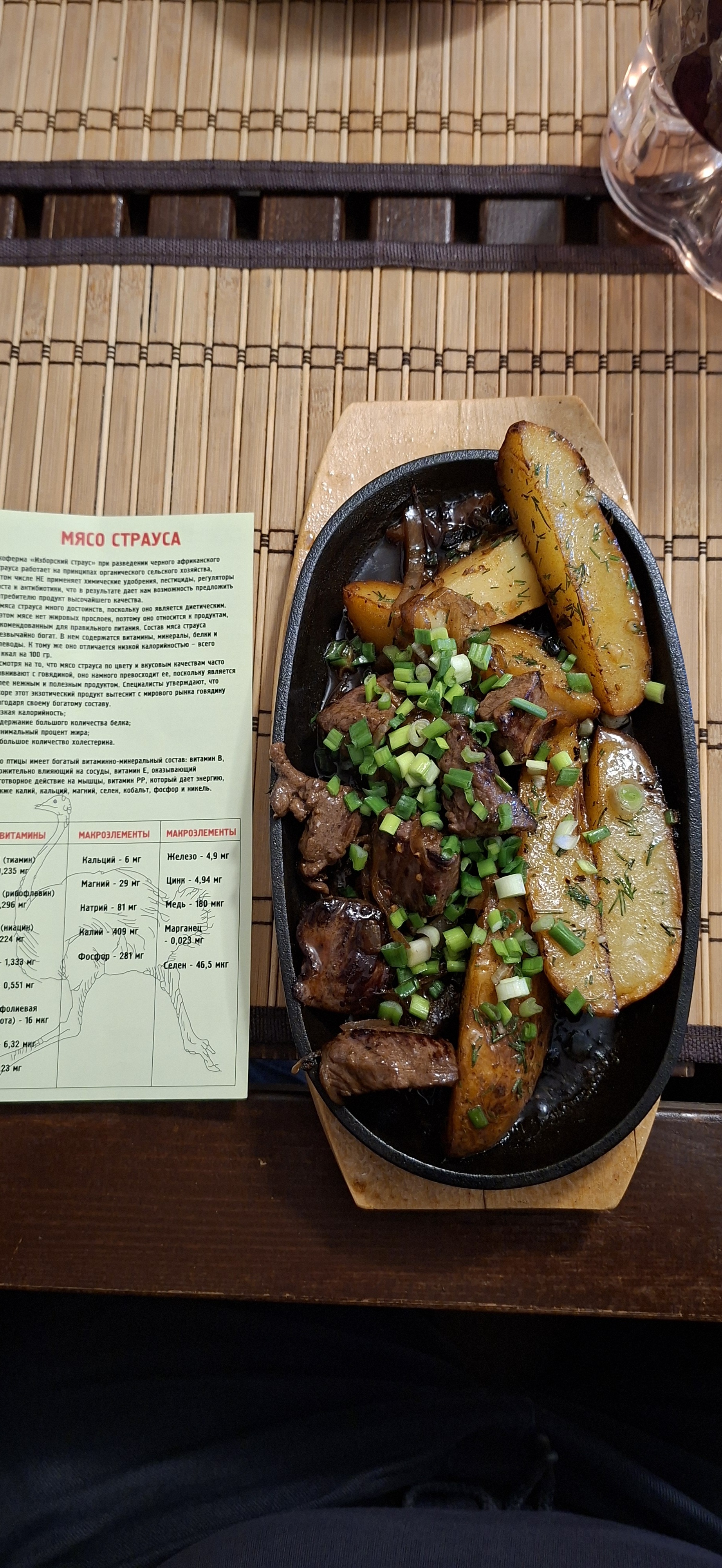 Но самое интересное ждало впереди. Мы решились на гастрономический эксперимент и впервые попробовали страусятину.