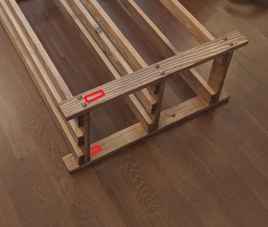 А у вас не найдётся ещё трёх поперечин? Я бы усилил крепление верхней полки. Если на неё сесть, или наступить, наступит крах этой милой конструкции.