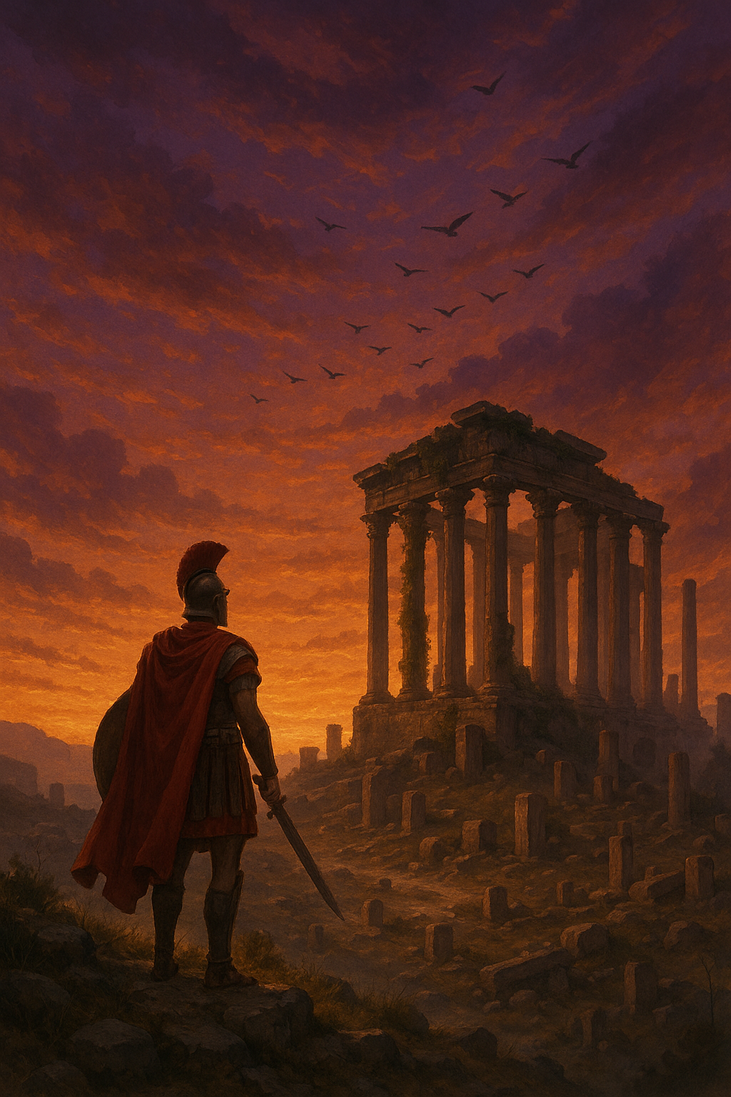 Рассвет встречал героев холодным светом, пробивающимся сквозь густые кроны деревьев. Ночные страхи рассеялись вместе с тенями, оставив в сердцах путников чувство тревоги и ожидания. Гай Октавий, Юлия, Марк и Аэлий продолжали свой путь через лес, направляясь к горным перевалам, где, по словам Аэлия, скрывалось святилище древнего бога, охраняющее вход к источнику.