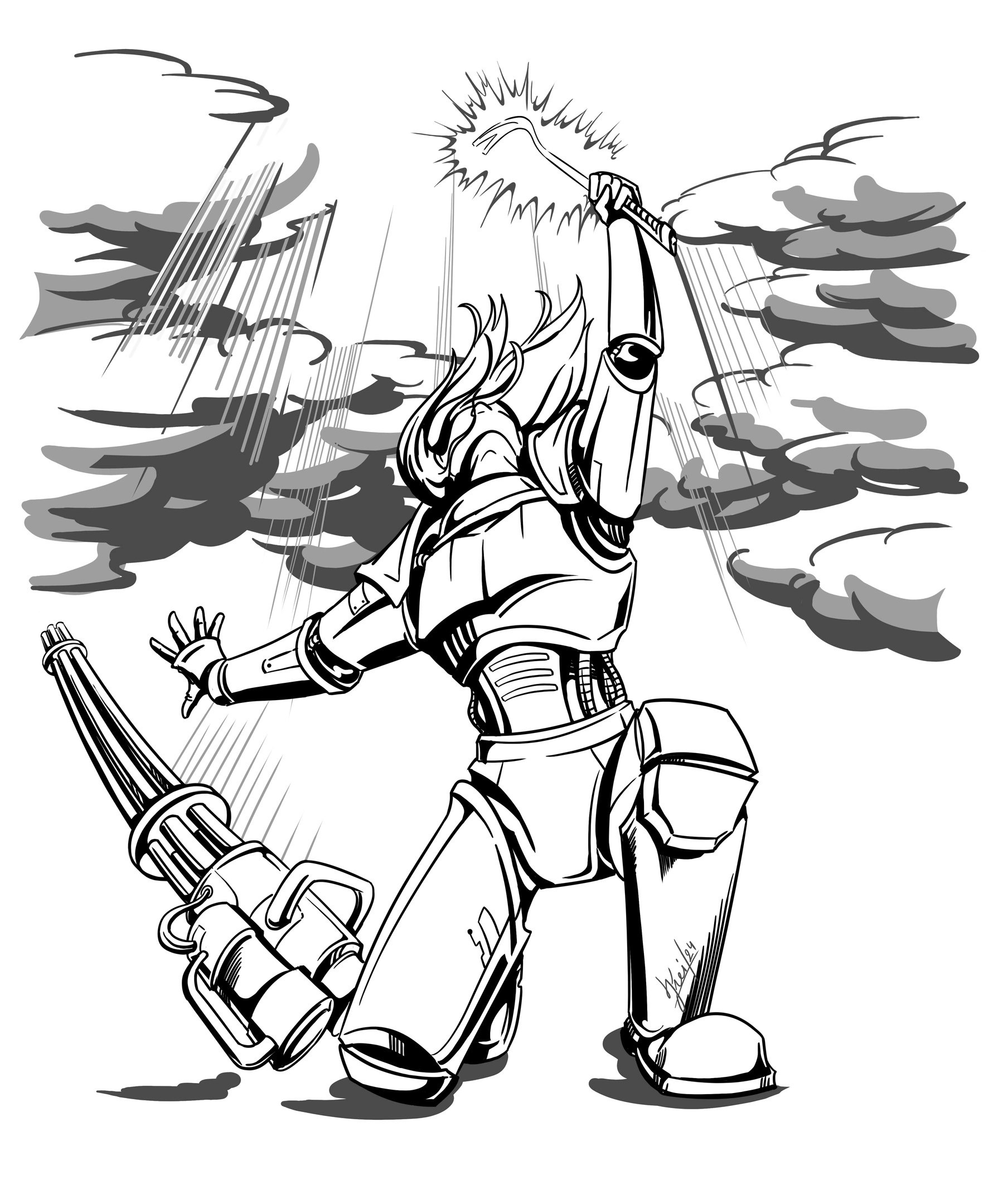 Обожает тяжелое вооружение и относится к числу тех не многих, кто способен пилотировать тяжелый силовой скафандр.
