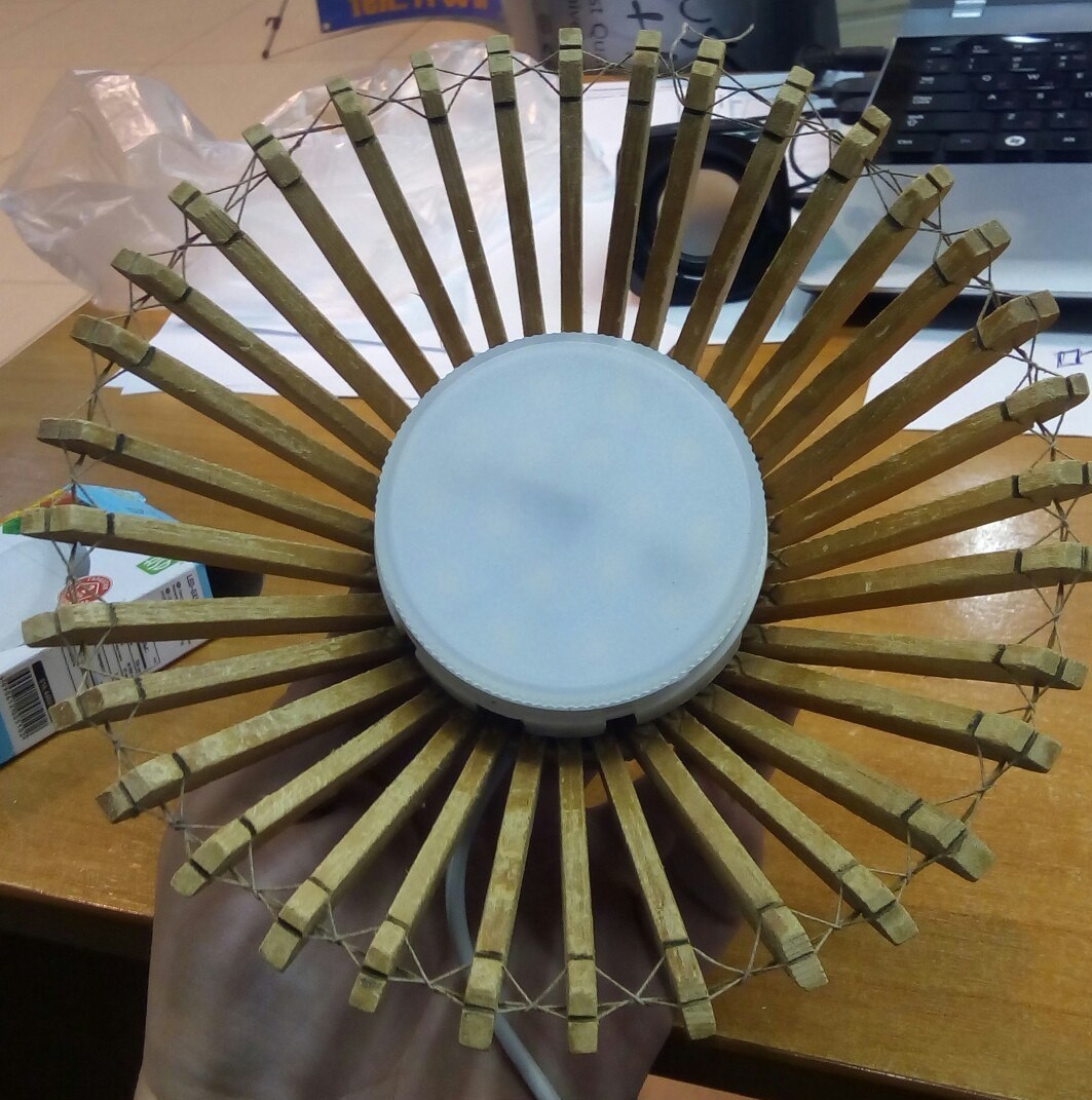 Работаю я на строительном рынке и прошёлся я по павильонам с освещением. Выбор пал на лампу G53 и цоколь к ней, по форме подходили идеально. В добавок приобрел провод с вилкой и выключателем, светильник же все таки. Куда без него.