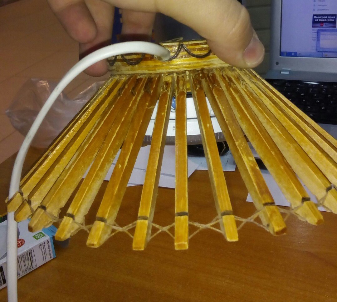 Получилась весьма необычная настольная лампа, а если перевернуть дном к верху, то и очень красивый ночник, хотя в таком положении фото не сохранилось, оставлю это на вашу фантазию.