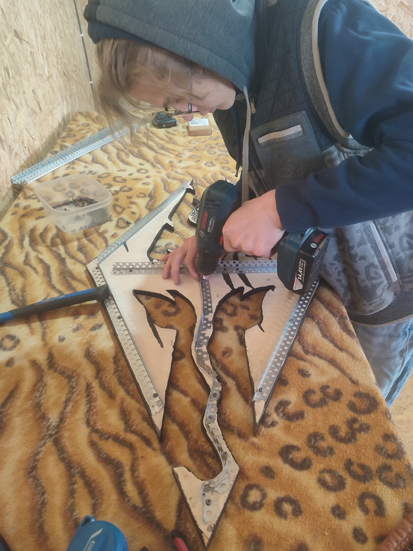 Драконы были изготовлены из фанеры 75 на 75 см. На МК ушло 5 метров ленты, на Скайрим 6 метров.