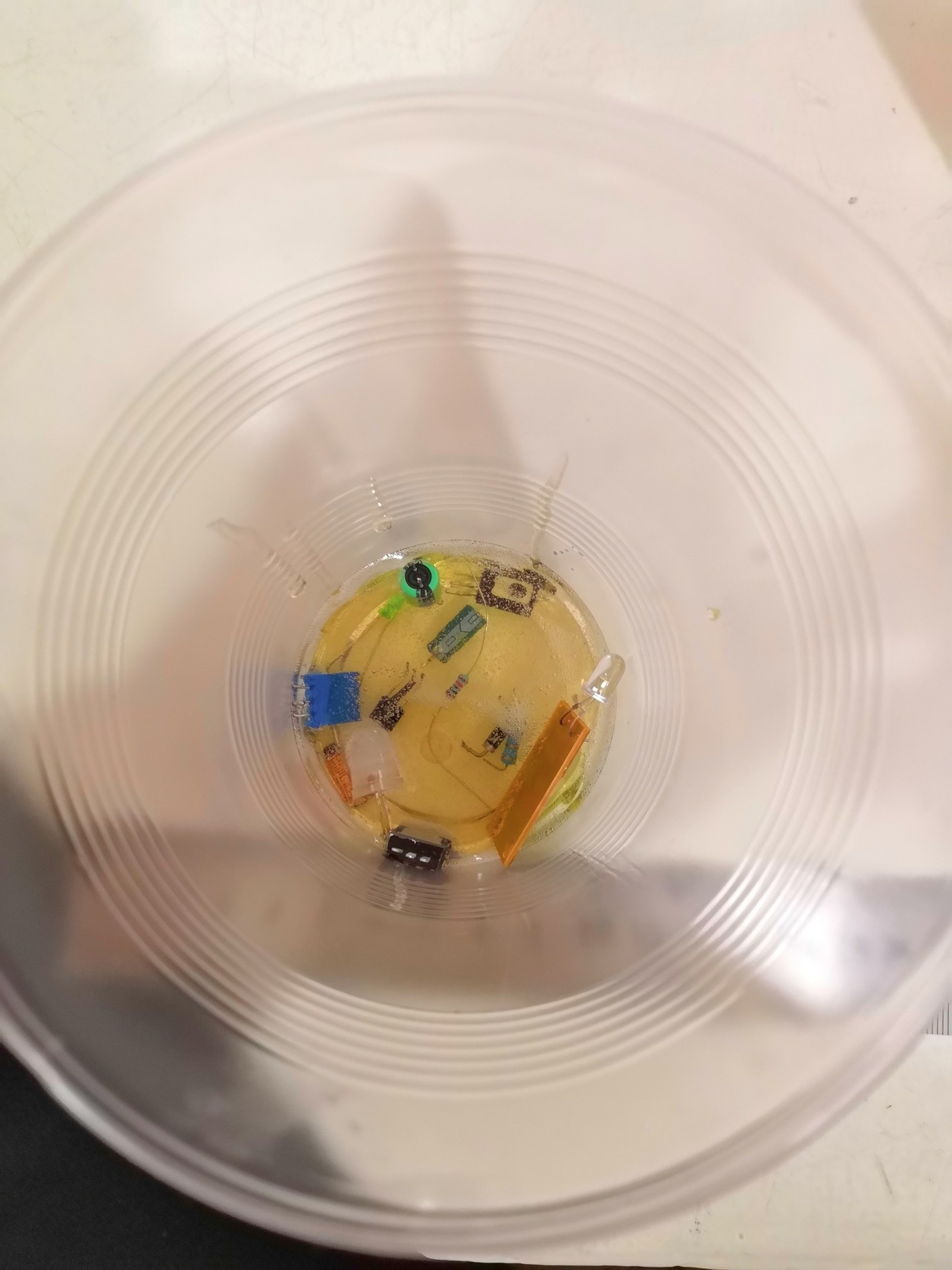 Продолжил до полного стакана 0,5л. В самом конце залил 3 светодиода.