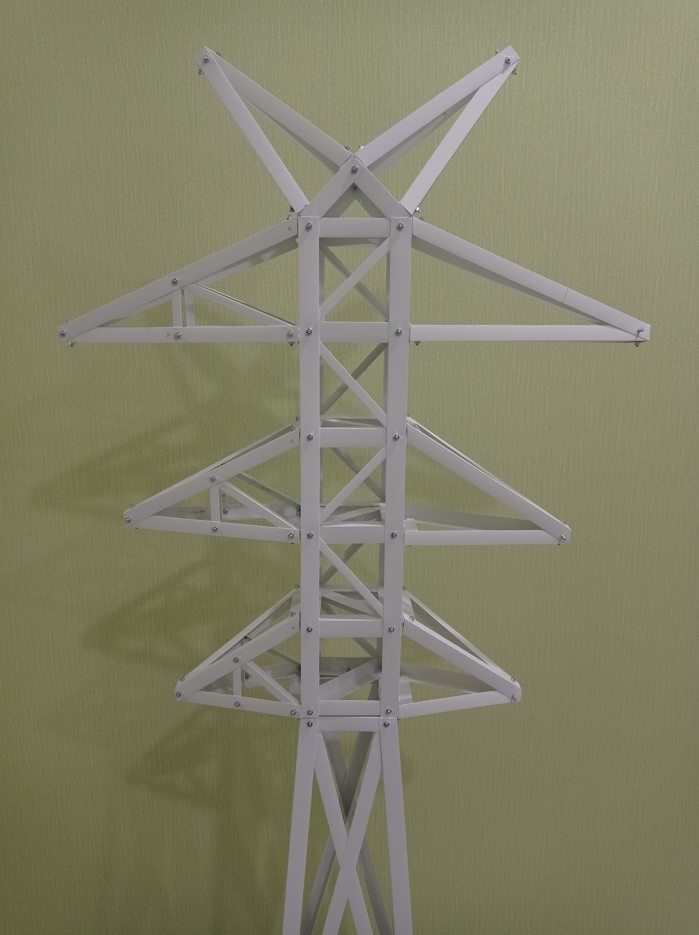 Каждая деталь вырезалась из бумаги, сгибалась и по ней уже вырезался сам уголок. Конечно, в процессе выявлялись косяки в чертежах, а также несколько раз переделывались сложные места соединения, как например диагональные раскосы нижних секций. Но проблема просраных полимеров решалась просто покупкой новых уголков. В результате начала получаться вот такая красота