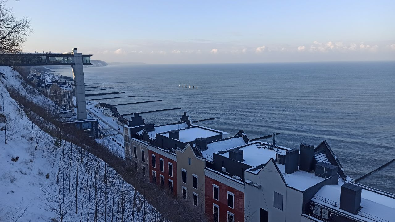 А поскольку в Калининградской области установилась по настоящему зимняя морозная и снежная погода, сегодня, нашей целью было выехать к зимнему морю, чтобы погулять и полюбоваться красотами, а замерзнув - согреться в уютном кафе. По этому выбор был между Зеленоградском и Светлогорском. В первом мы были совсем недавно, по этому решили отправиться во второй, где не были целый год.