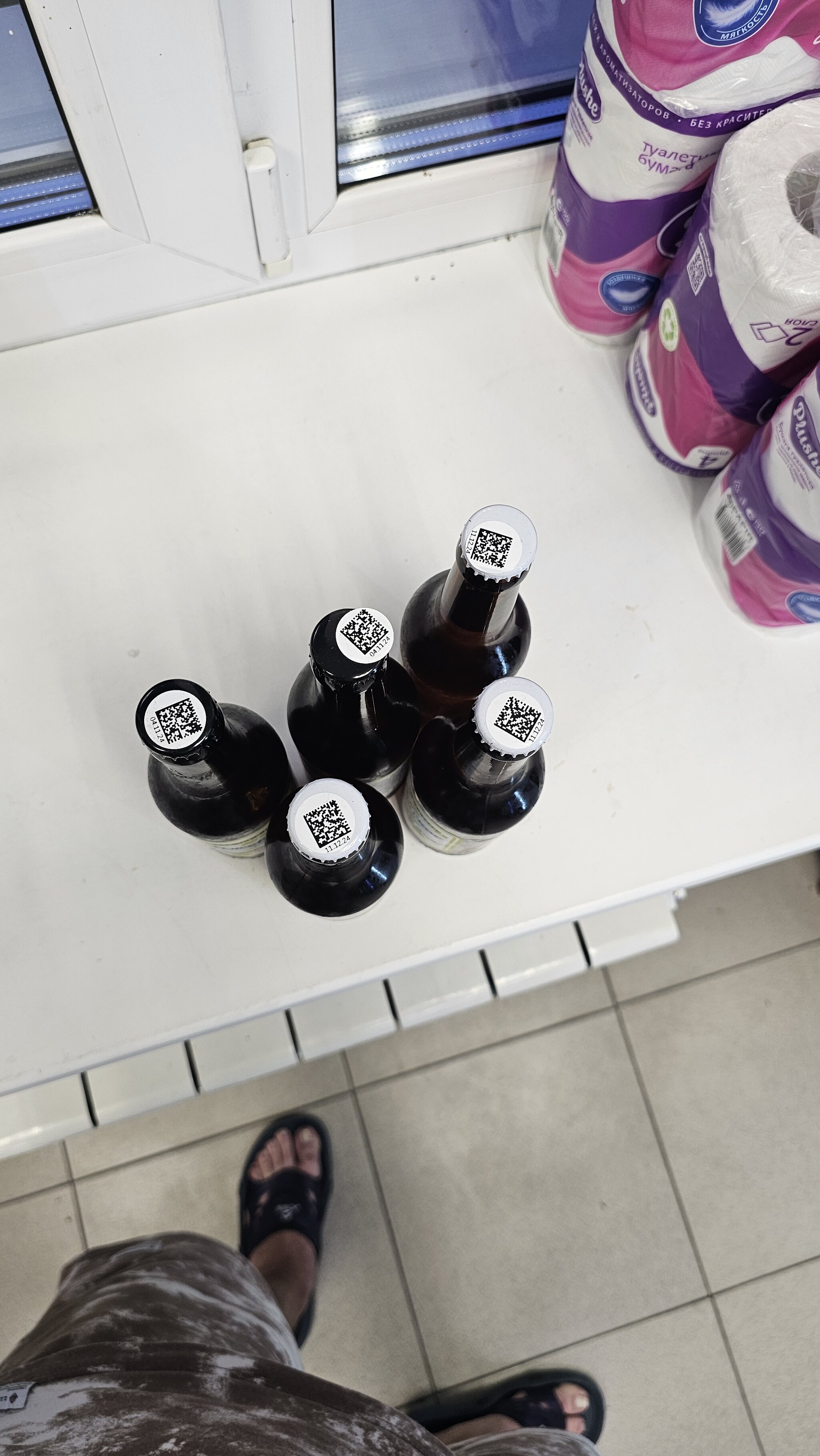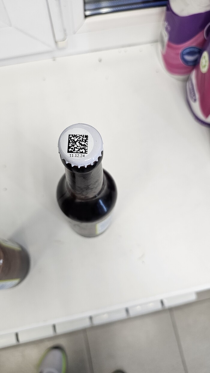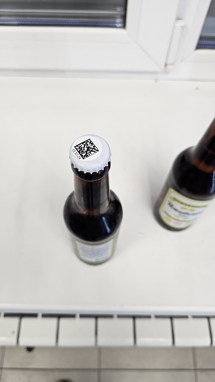 Взяв пару бутылочек пива, я двинулся на кассу. Но молодая девушка продавец с улыбкой на лице сказала, что это пиво только за наличный расчёт или переводом на карту, так как система не может его продать из за какого-то сбоя. Не имея наличных и желания расплачиваться переводом, я выбрал другое пиво, которое система может продать. Но внутри меня закрались какие-то сомнения на счёт пива которое система не может продать, поэтому я решил его проверить. На бутылке я не нашёл информации о дате изготовления (далее на фото, на оборотной стороне бутылки будет виден белый прямоугольник в котором должна быть отлбражена дата производства), поэтому решил пробить информацию через приложение честный знак. И как же я охуел был неприятно удивлён, когда увидел, что пиво просрочено от 4 до 28 дней.