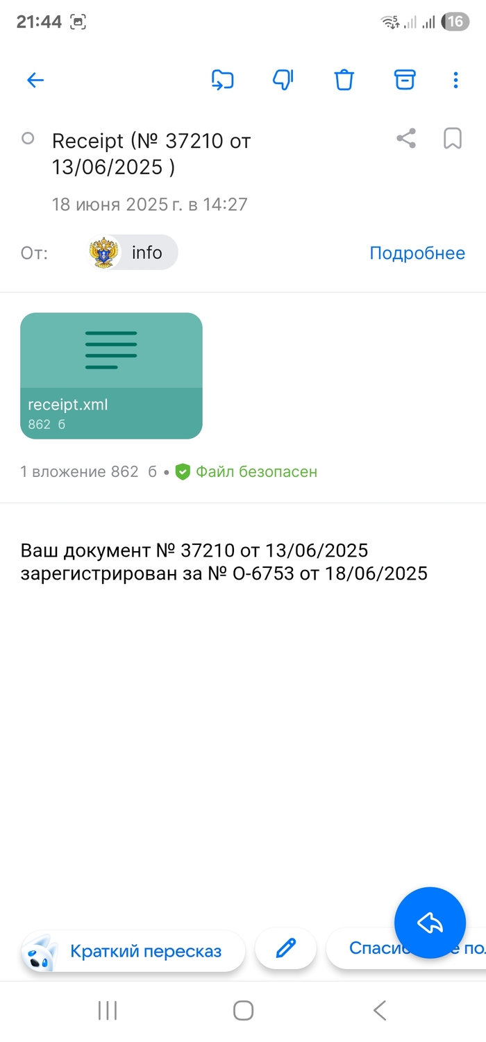Через несколько дней получил сообщение, о том, что моё обращение принято в работу.