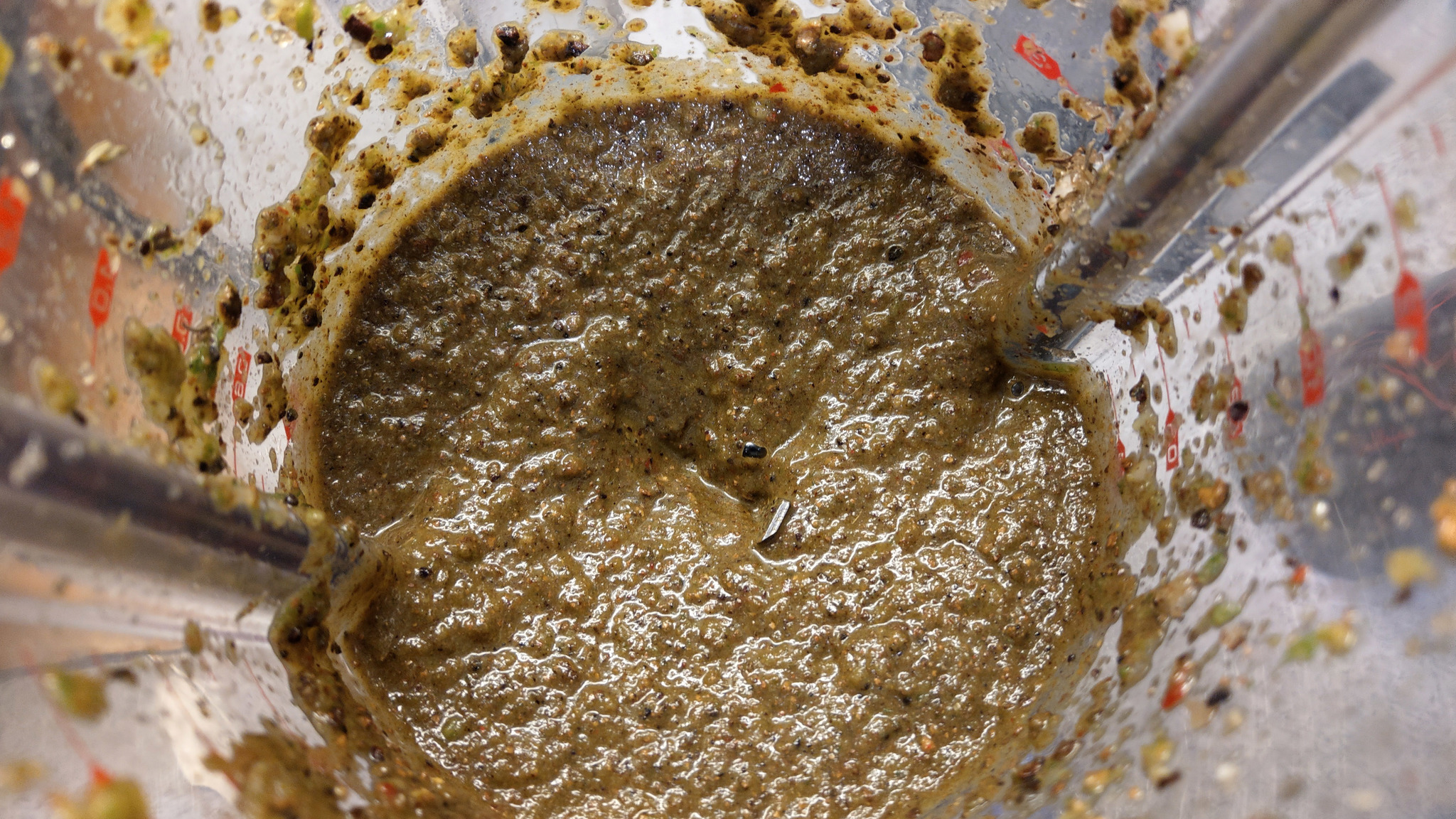 1. У перца удалите семена и перегородки, мелко нарежьте. У тимьяна удалите стебли. Зеленый лук измельчите. Положите очищенный чеснок, лук, тимьян, перец, сахар, душистый перец и соль в блендер. Измельчите до однородности влив немного масла. В итоге должна получиться ароматная паста.