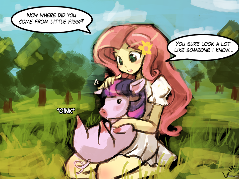 iluha0001 Свинка Твайли. 10 лет назад -Откуда ты пришла, маленькая свинка? Я уверена, что ты выглядишь как кто-то, кого я знаю. My Little Pony Twilight sparkle Fluttershy Свинья Хуманизация