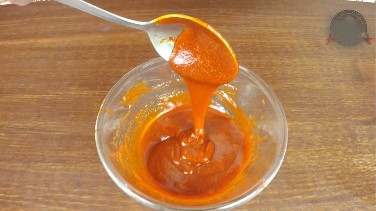 Для соуса:Растительное масло – 5 ст.л.Сахар – щепоткаСоль – щепоткаСладкий красный перец – 1 ч.л.Сухой чеснок -1,5 ч.л.Томатная паста или томатный кетчуп - 1 ст.л.Соевый соус - 1ст.л.Мед – 1 ст.л.