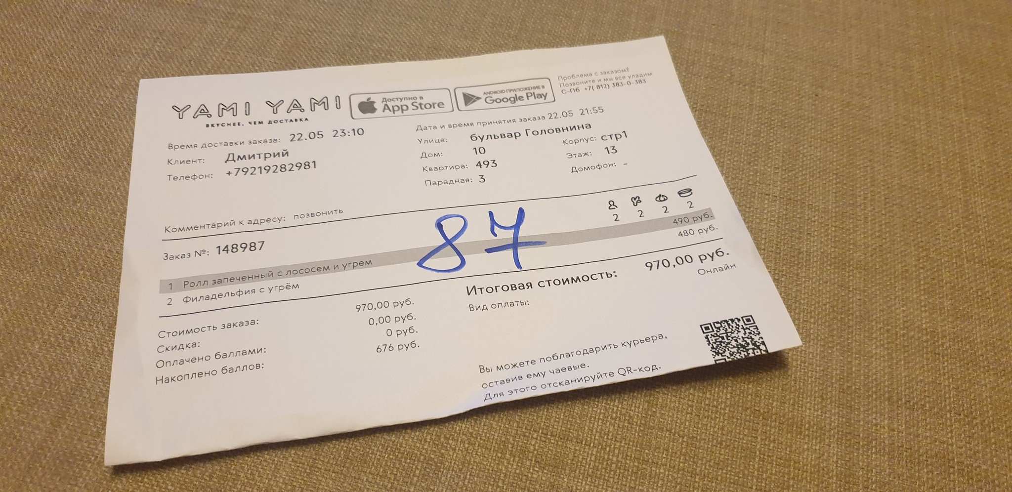 На что последовал ответ: либо ждите ещё 30 минут заберут у вас часть заказа и вернут вам деньги, или ешьте, что привезли и за вторую позицию в заказе, мы вернём деньги.