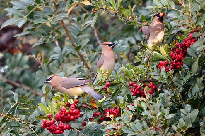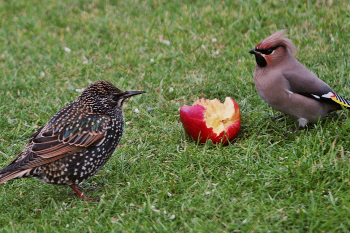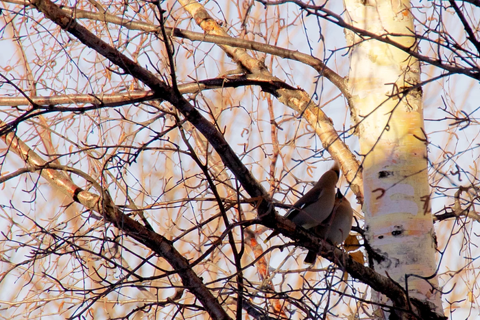 Свиристели съели бы всё… Но видит око, да строение лап не позволяет. Всё, что лежит на земле — непозволительная роскошь для лесного попугая! Птицы не способны поднимать с земли ни ягоды, ни откормленных жуков. Приходится компенсировать такую оплошность. Если птицы подлетают к кусту, то на нём не остаётся абсолютно ничего. Когда хохлатая появляется в городах, многие люди говорят ей «спасибо!». Мошкары, комаров и прочего гнуса становится во сто крат меньше.