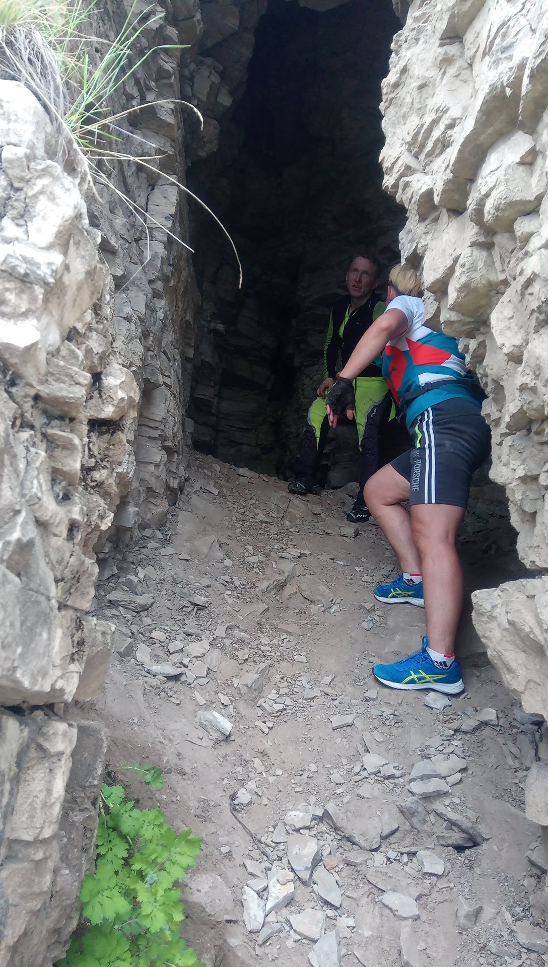 Если верить интернету, то пещера не сильно длинная, всего метров 50, но местами очень узкая и высокая, по сути большая трещина в береговом утесе, кстати в самые дальние закутки пещер полезли лишь три человека: Светлана, Андрей и автор этих строк) Через несколько километров после пещер, я проколол колесо, но по скольку я с собой кроме воды и перекуса ничего не взял, ну не было опыта каток, то спасали меня окружающие: монтажки, клеи и заплатки дала вечно веселая Ольга, насос Светлана, а контроль за тем как я справляюсь вел Александр, было и смешно и немного обидно. Заклеил, накачал и поехали дальше.