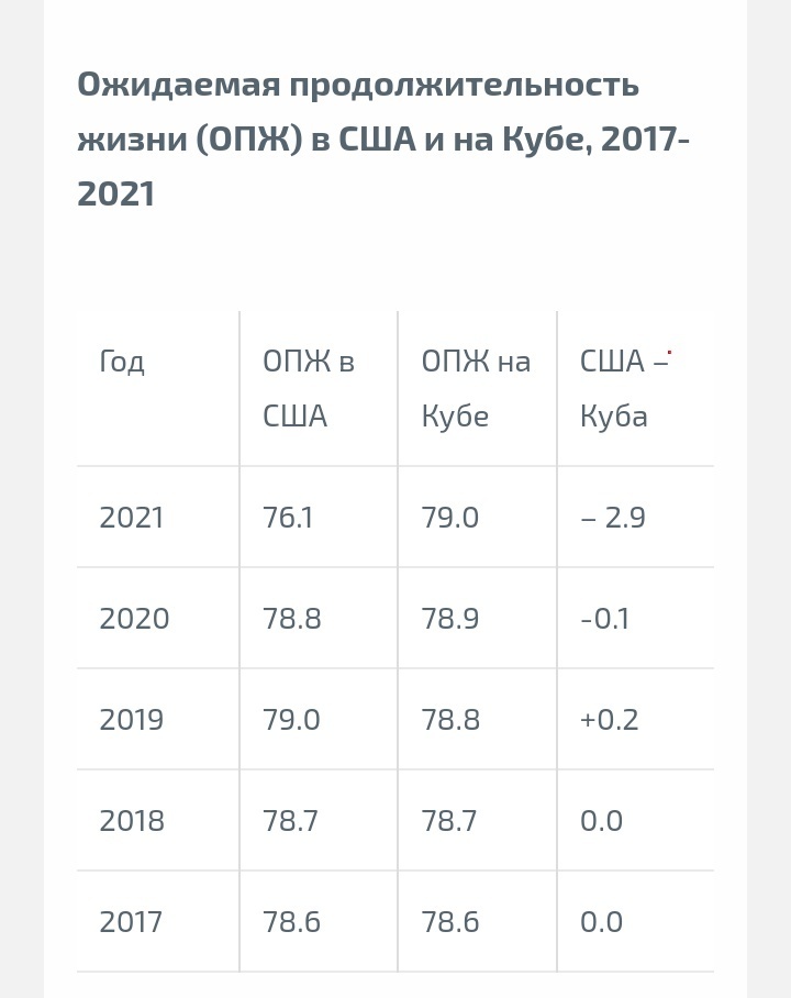 Эмм, я луче 76.6 лет проживу в "клятой пендосии", нежели 77.8 на кубе.