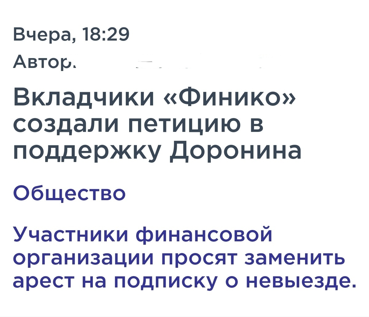 Якобы вкладчики "пирамиды" Финико через change.org просят освободить Доронина, чтобы ...[ барабанная дробь]... он им деньги вернул!