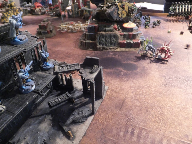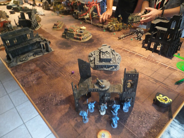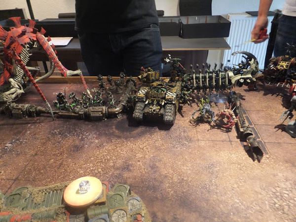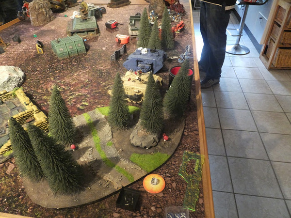 Первый ход Империуму был очень важен, по этому мы с союзниками обсудили и решили заявить 5 минут, ибо Армия Кровавых Ангелов была в резерве практически вся, а ДА деплоили вообще один Лэндрейдер с Черными Рыцарями на борту.