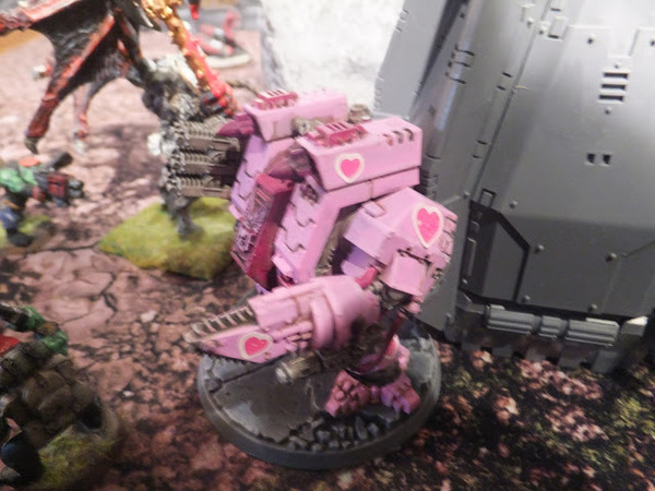 Дредноут космических волков, оказавшийся в свое время в лапах демонов Слаанеша, но не поддавшийся на разврат, прибыл первым.