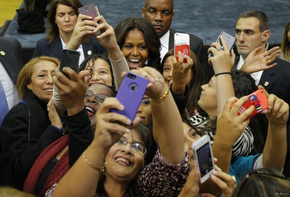 SashaUrban Своя атмосфера. 10 лет назад Мишель Обама позирует с избирателями на предвыборном митинге Демократической партии. (Фото: Brian Snyder) Мишель Обама США Селфи