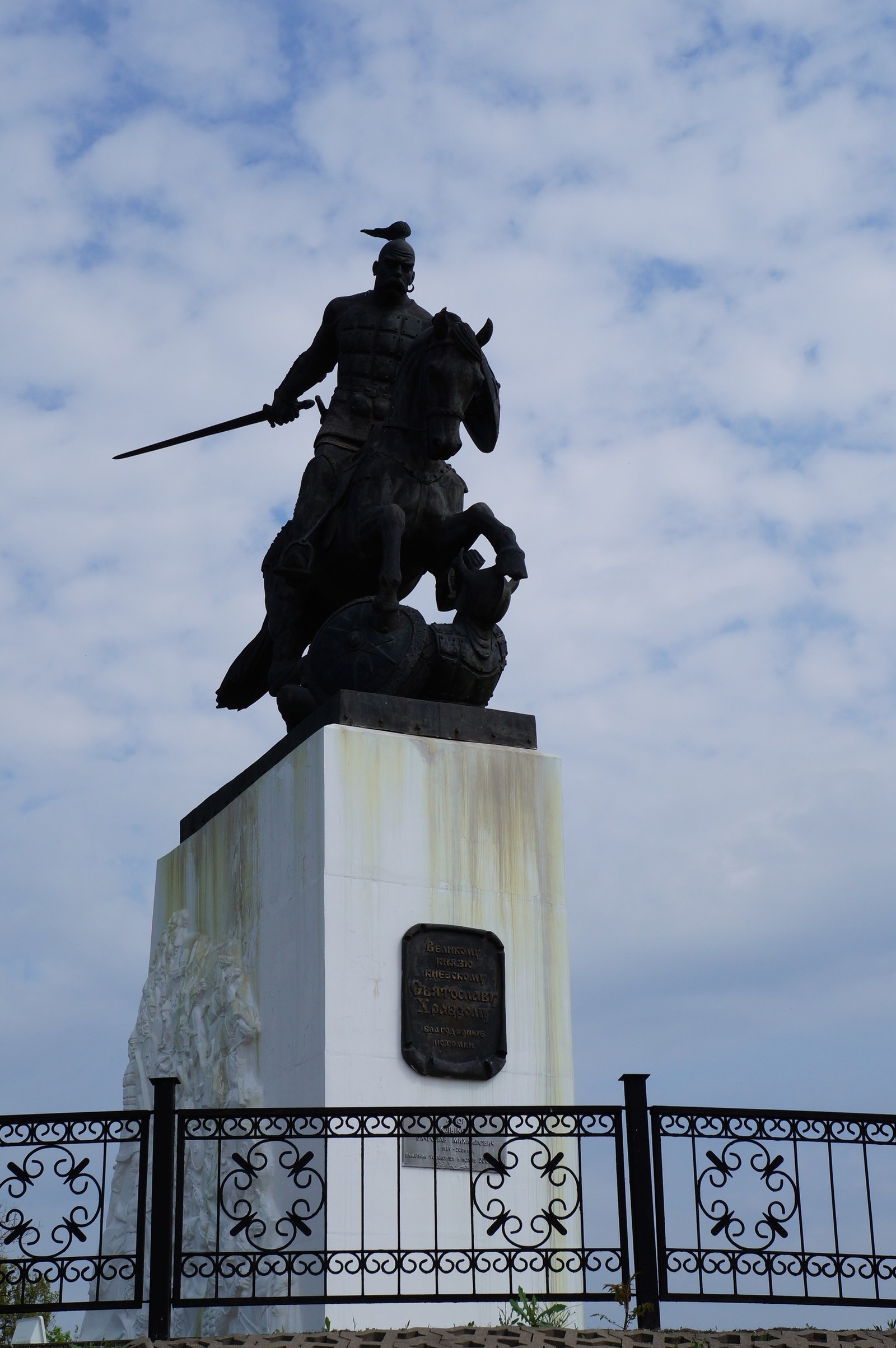 "Установлен в ноябре 2005 году по случаю 1040-летия победоносного окончания похода князя против Хазарского каганата, в результате которого князь Святослав освободил Русь от хазарского ига и укрепил союз славянских племён." (Википедия)