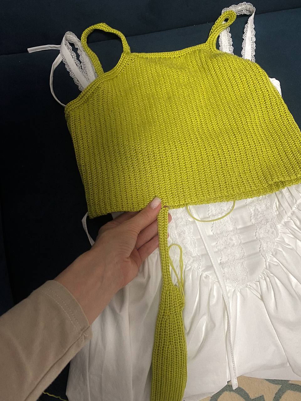 Начала реализовывать задуманное с топа. Вязала его уже по отработанным своим записям, поэтому это было быстро.