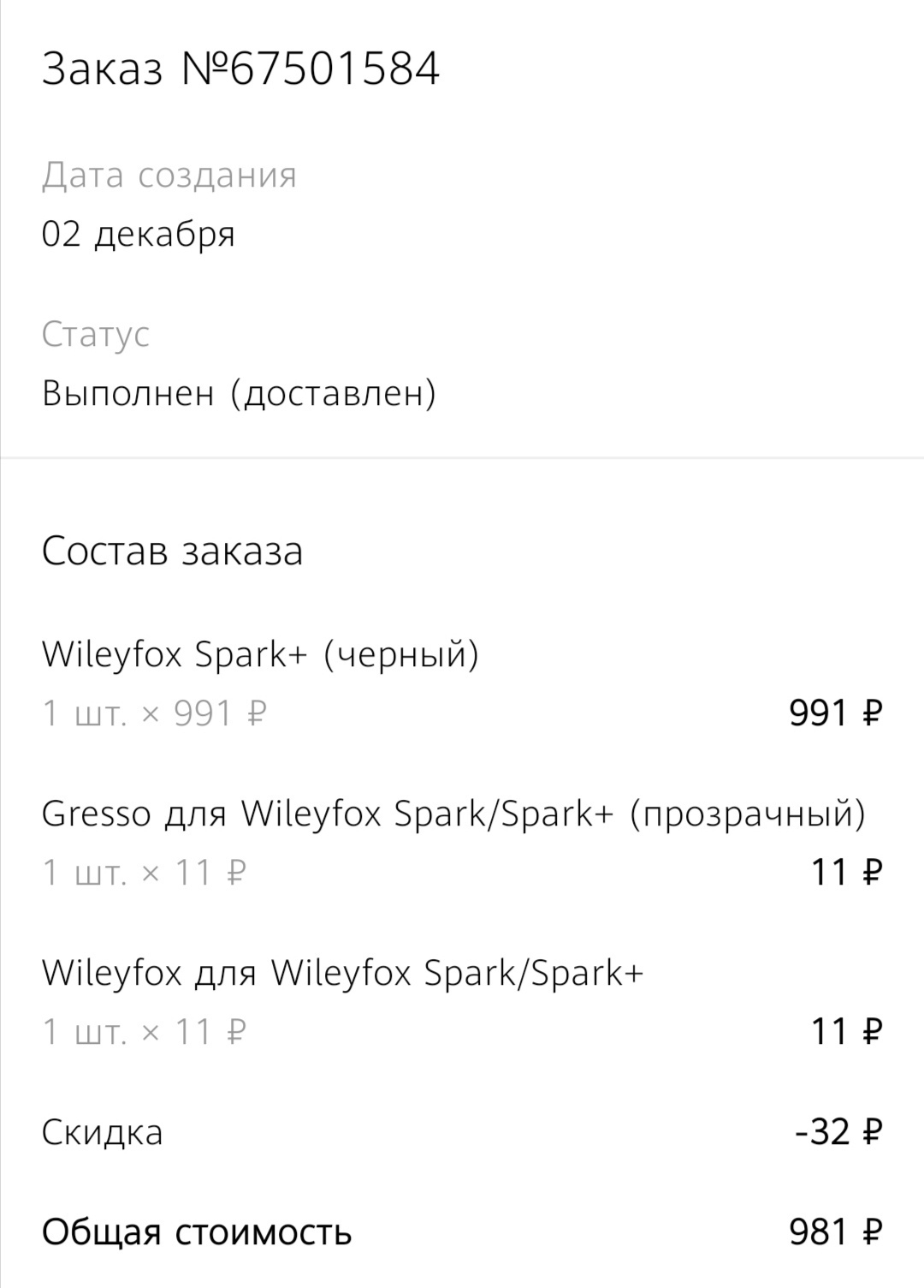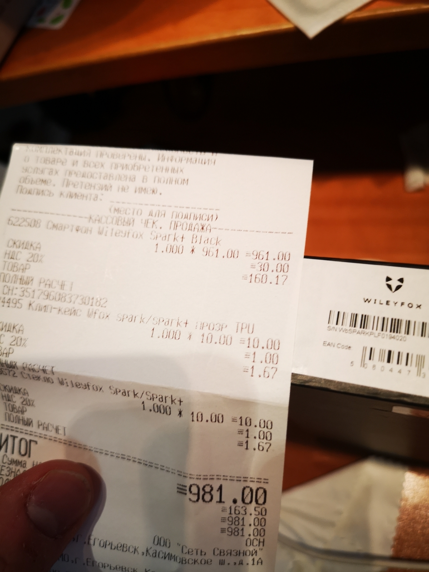 Суть. 2 декабря 2019 года мной в интернет-магазине Связной был оплачен заказ: Смартфон Wileyfox Spark+, чехол и стекло для него с самовывозом в городе Егорьевск, Касимовское шоссе 1А. (Товарищ по работе был проездом, попросил его забрать, сам живу в 35 км от этого города). В ходе быстрого визуального осмотра друг приобрел смартфон, однако чехол и стекло продавец найти не смог - обещал поискать, либо отмена заказа полностью (они стоили по 10 рублей, поэтому забрали смартфон, решив купить остальное в другом месте, но не суть).