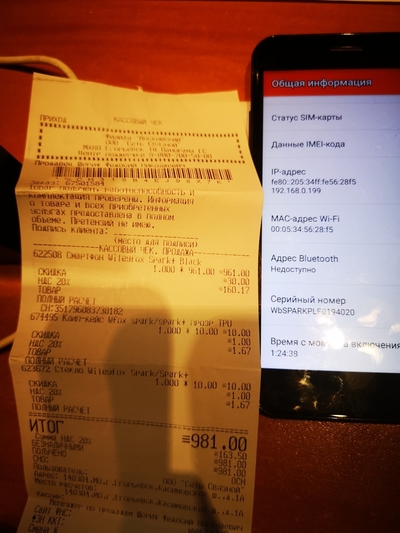 Кстати, оказывается серийный номер на чеке и коробке/телефоне не совпадает от слова совсем. В чеке же он написан?