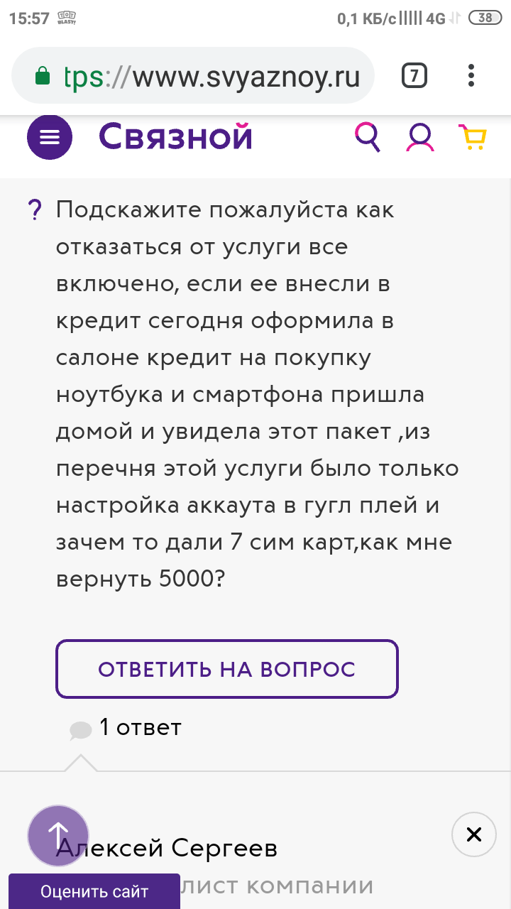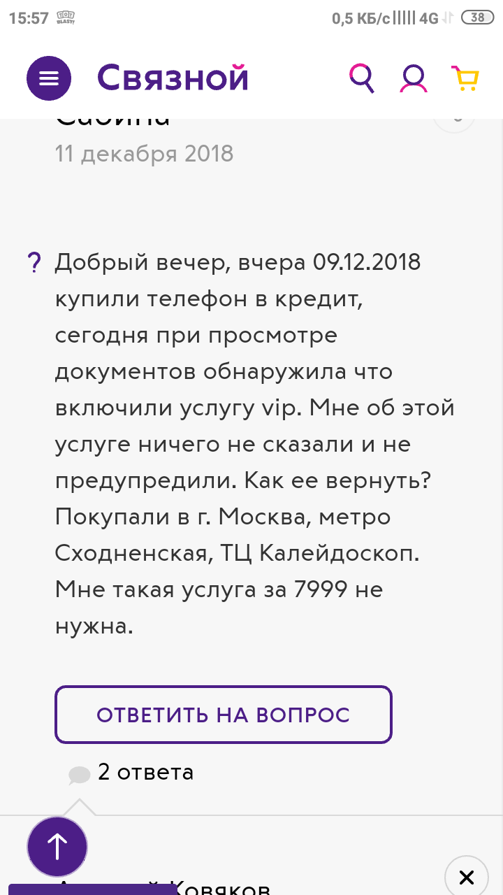 А после ответа от "Связного" я честно сказать немного охренел.
