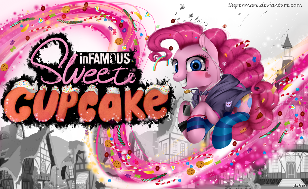 9 MeGaDroN 10 лет назад Sweet cupcake by Supermare My Little Pony Pinkie Pie Infamous Кроссовер Ponyart Арт Supermare