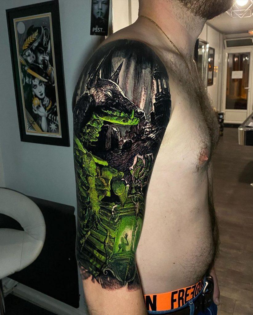 Сэндри Риффард (Sandry Riffard) — талантливый художник-татуировщик из Франции, специализирующийся на мрачном гиперреализме. Черепа, демоны, ад, кишки и кровавые сцены из хорроров — все это сделано чертовски захватывающе. Трудно поверить, что у Сэндри нет художественного образования. Он самоучка, который пришел в искусство буквально с пасеки.