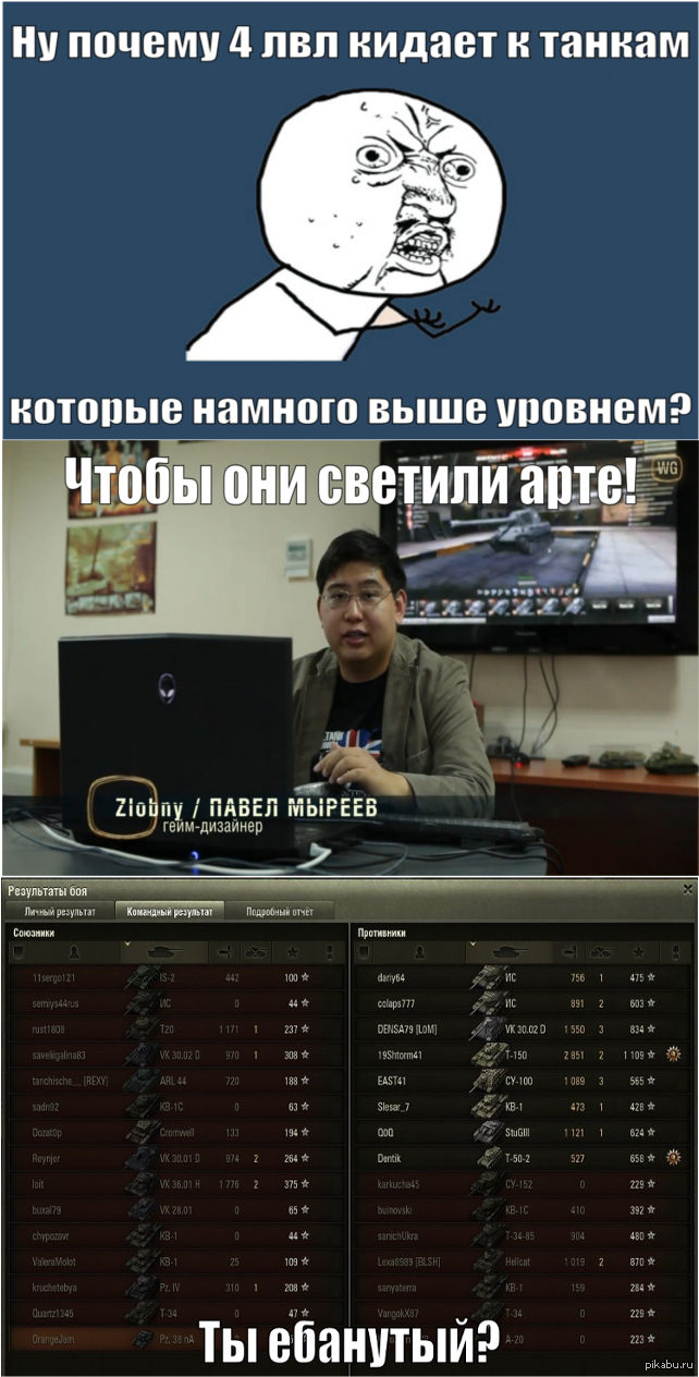 OrangeJam 12 лет назад сыграл в wot после долгого перерыва иногда поигрываю в танки, такие ситуации отбивают желание играть ещё несколько недель) World of Tanks Маразм Балансер