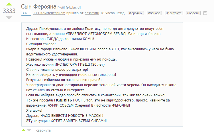 Так же просьба ПОДНЯТЬ ПОСТ В топ, это не кармадрочество, просто, извините за выражение, ЧУРКИ СОВСЕМ Охерели! В частности ФЕРОЯНЫ!