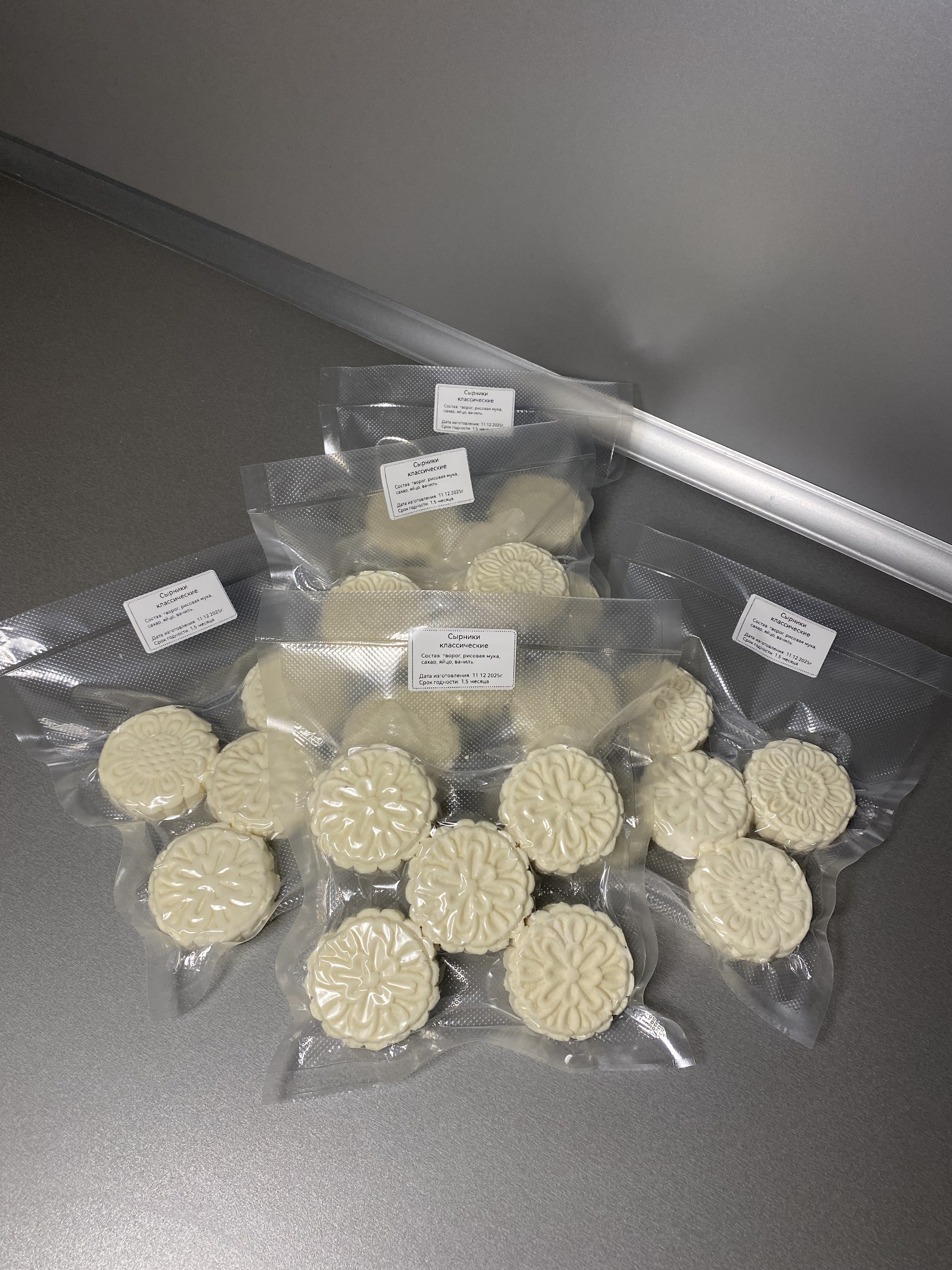 После я порционно вакуумирую замороженные сырники, так они не теряют форму.