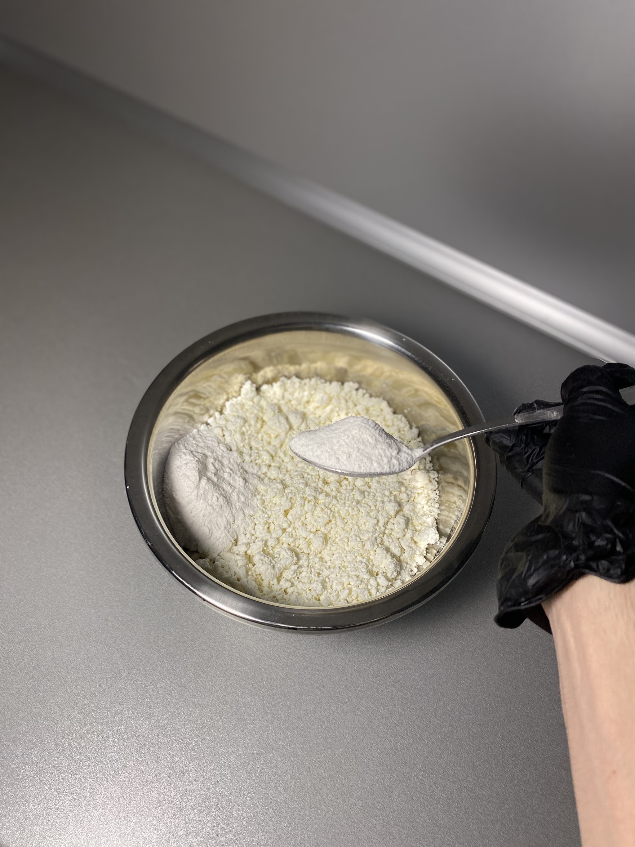 Далее добавляем рисовую муку, 4 столовых ложки с горкой.