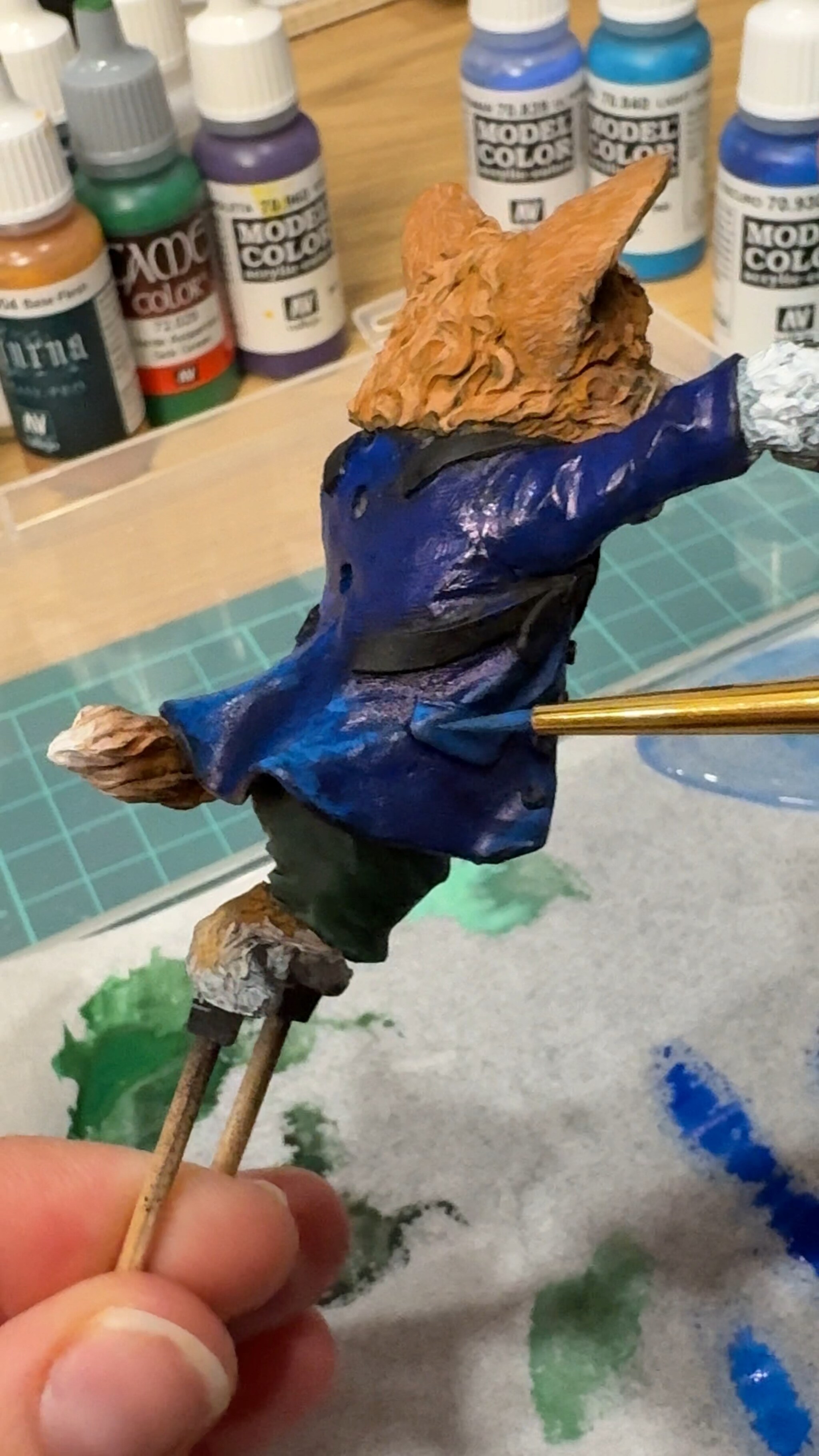 Помучилась какое-то время с жилетом. Хотелось сделать его полосатым, но складки поломали мне голову, поскольку я совсем не художник и не шарю в изгибах. Гуглила картинки, смотрела примеры. Понимаю, что не совсем верно вышло, но оставила, как получилось. Здесь на фотке промежуточный этап покраски жилета, поскольку в этот фоткала мало. Долго не получалось задуманное.