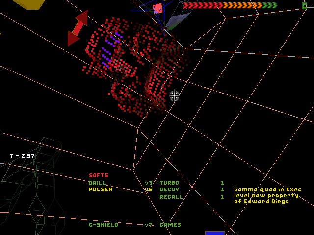 ...И сразу почувствовал угрозу. Прямо рядом со мной был рогатый кибер-страж. Я довольно быстро с ним разобрался, и тут же увидел, как из тоннеля ко мне направляется нечто угловатое, но отдалённо-собакоподобное. Охотник-убийца. Эта программа - что-то вроде лейкоцита в Сети. Она не привязана к конкретному сегменту киберпространства — её задача состоит в том, чтобы выискивать и атаковать неавторизованных пользователей.