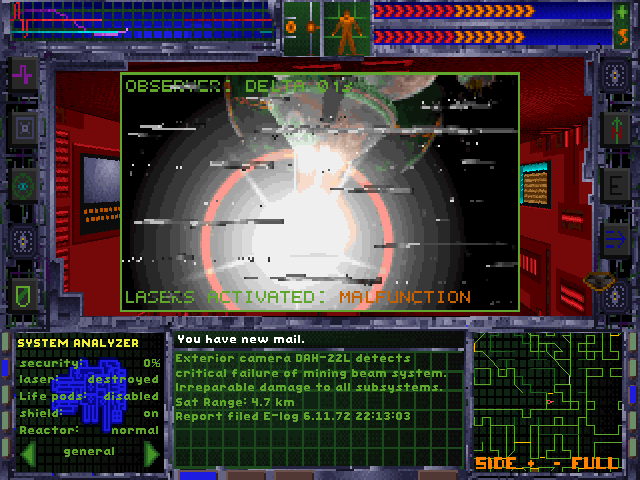Это, похоже, было помещение службы безопасности. Рядом была оружейная, но оказалось, что её можно открыть только из кибер-пространства (какой-то военный протокол). Кибер-терминал уцелел. Я решил подключиться...
