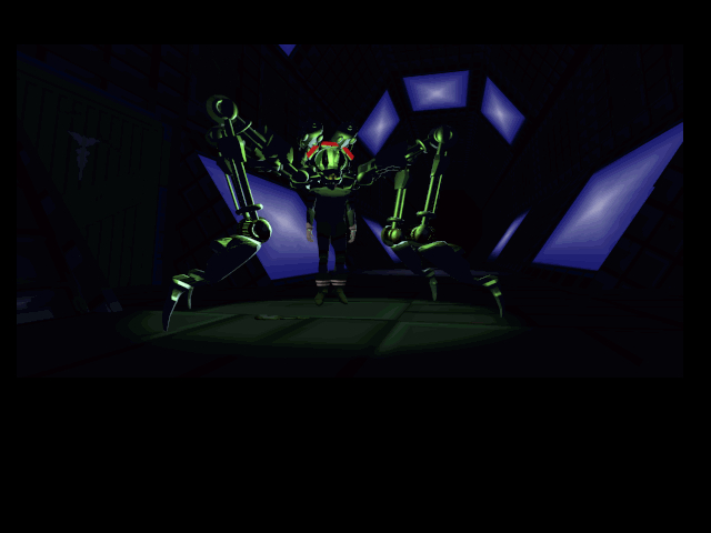 По крайней мере, я мог посмотреть изображение с видеокамеры через диспетчерский пульт. На нём был виден один из посадочных отсеков - огромный ангар для приёма и вылета космических шаттлов. Пол был усеян телами людей, а в воздухе парили какие-то крылатые существа синего цвета, напоминавшие птеродактилей.