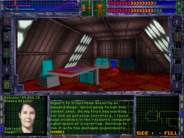 И вот ещё что: записи экспериментов защищены системой безопасности "SHODAN", так что я нанял хакера, чтобы её взломать. Управлять ей - значит, управлять всеми роботами и прочими системами станции. Ты понимаешь, что это значит, да? Это на случай, если они решат меня прижать. Так что сильно не парься, у папы всё под контролем!